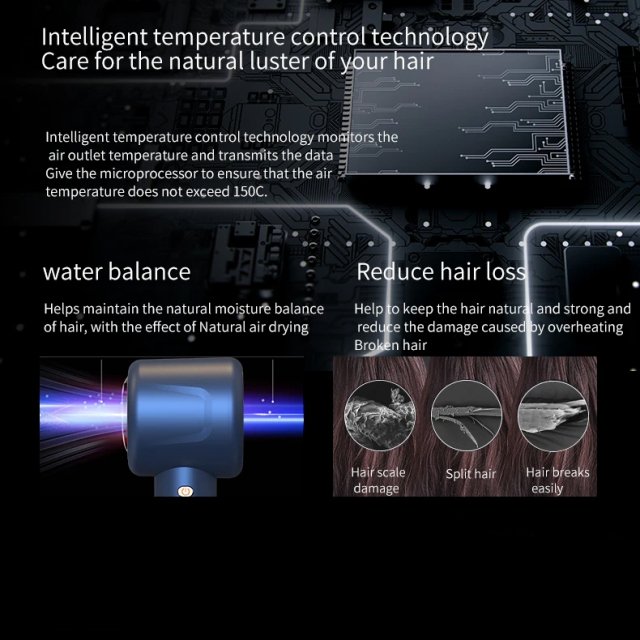 • Doppia Modalitร  di Riscaldamento: Personalizza l’asciugatura in base al tuo tipo di capelli e alle tue esigenze.